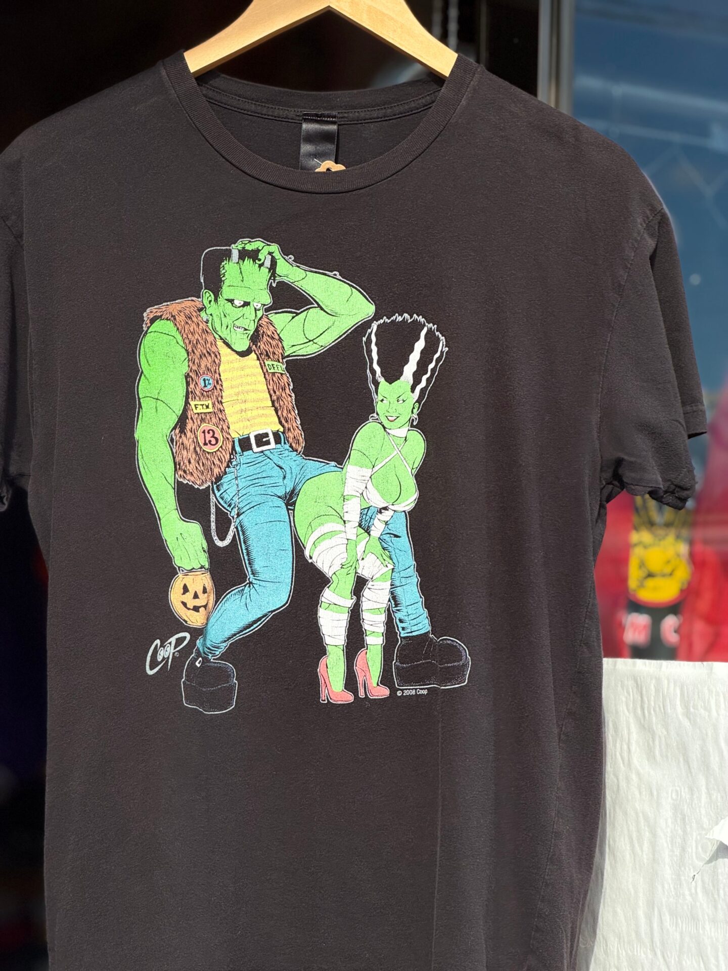 00’s Coop Electric Frankenstein “How To Make a Monster” 半袖Tシャツ 実寸Mサイズ程 エレクトリック・フランケンシュタイン ガレージパンク ロックバンド アートワーク クープ hot rod ローブロー ローブロウ エロT ハロウィン モンスター 古着 バイカー